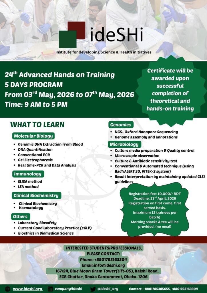 We are excited to announce a 5-day intensive program designed to enhance your skills through practical, hands-on learning. Date: 3rd May, 2026 – 07th May, 2026 167/24, Blue Moon Gram Tower(Lift-5 & 11), Kalshi Road, ECB Chattar, Dhaka Cantonment, Dhaka-1206 What to Expect: Interactive hands-on sessions Expert-led training modules Networking opportunities with peers and professionals […]